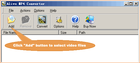 "Add" button on top of main window of Alive 3GP Video Converter to select the