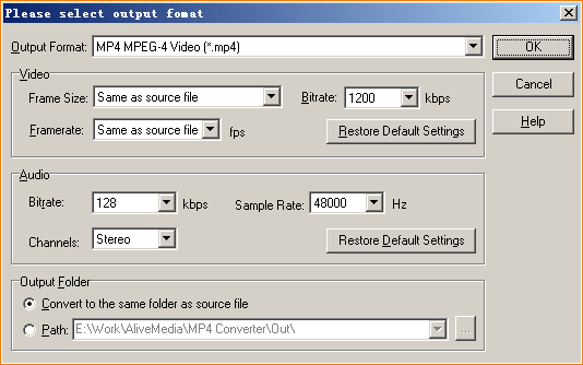 and the ouput directory. This is the screenshot of Alive 3GP Video Converter.