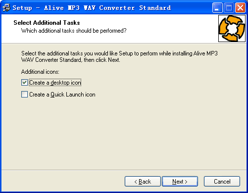 Select the additional tasks you would like Setup to perform while installing Alive MP3 WAV Converter Standard.