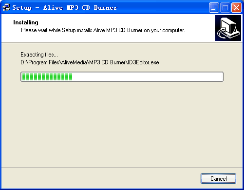 Please click "Cancel" button if you would like to abort the Setup of Alive MP3 CD Burner