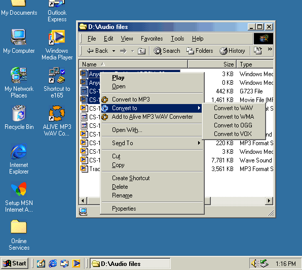 files in Window Explorer to start conversion with Alive MP3 WAV Converter.