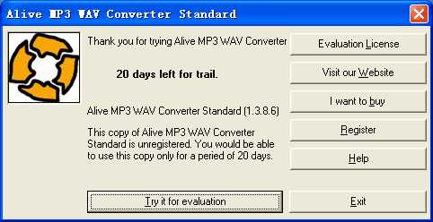 If you do not want to show this window, pleae registry Alive MP3 WAV Converter, thank you.
