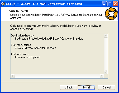Click Install to continue with the installation, or click Back if you want to review or change any settings.