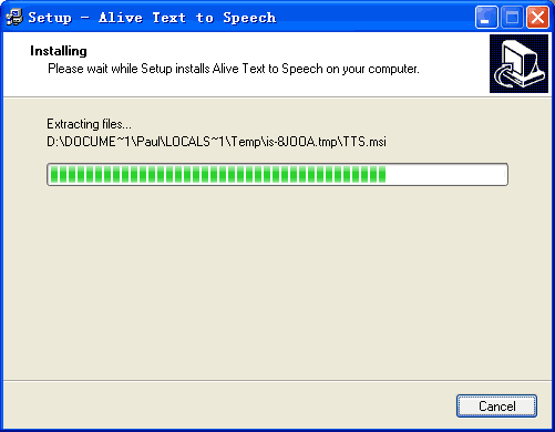 Please wait while Setup installs Alive Text to Speech on your computer.