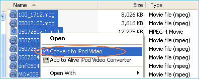 2 - Click "Convert to iPod Video" item, done! Alive iPod Video Converter