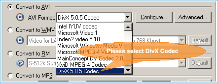 to AVI" item, and click "AVI Format" combo box to select "DivX