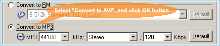select the output format, such as AVI, MPEG, WMV, RM or MP3, change the video