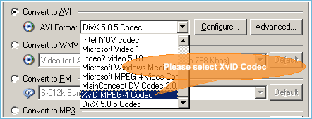 to AVI" item, and click "AVI Format" combo box to select "XviD